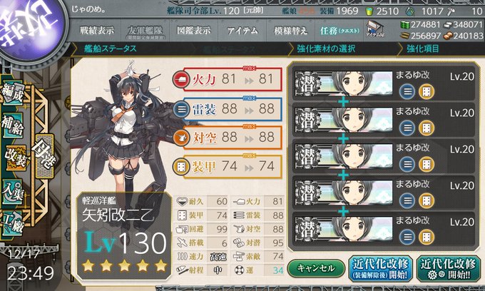 矢矧の運を上げていく 旗艦なら魚雷カットインを期待できる程度になってきたかな
