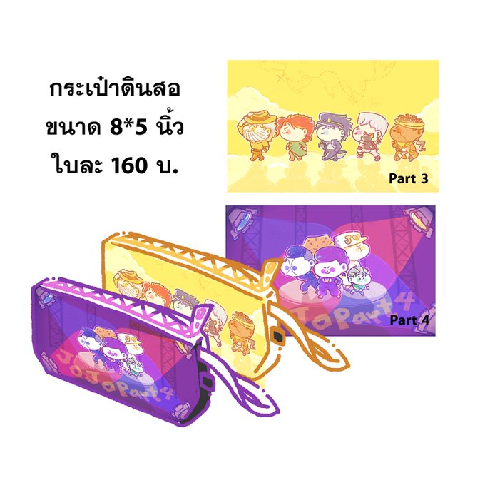 เปิดพรีออเดอร์โดจิน กับกระเป๋าดินสอครับ https://t.co/Op7CtWvILW Sorry this pre-order for jjba event in thai😭