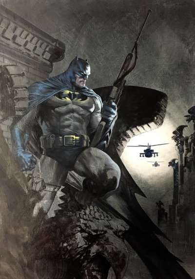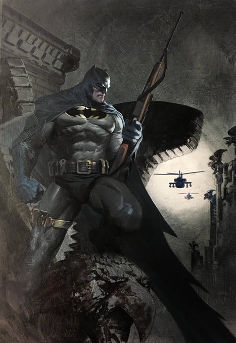 #Batmanwholaughs #1 by Gabriele Dell'Otto, perhaps the greatest modern painter of our generation, has painted another iconic image for #Bulletproofcomics ! Thank You @DCComics This book comes out in 72 hours. Pre-order you copy @ https://t.co/ugAqrgSqnp