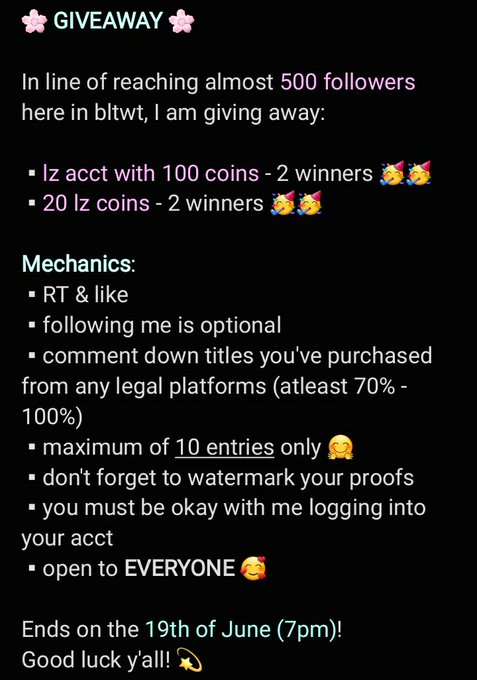 🌸🌸🌸 In celebration of me reaching 1k followers here on bltwt, I'm hosting a smol giveaway! 🌸🌸🌸 For more info pls refer below: