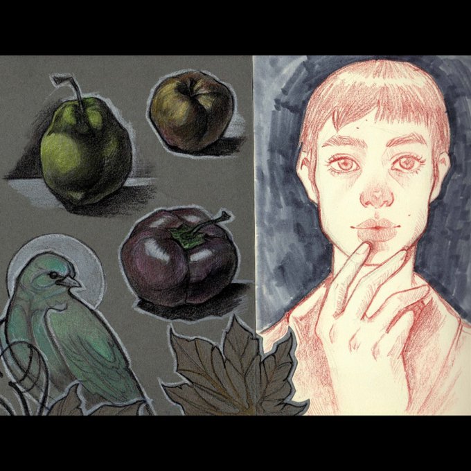 #sketchbook page #colourpencils #studies #copicmarker