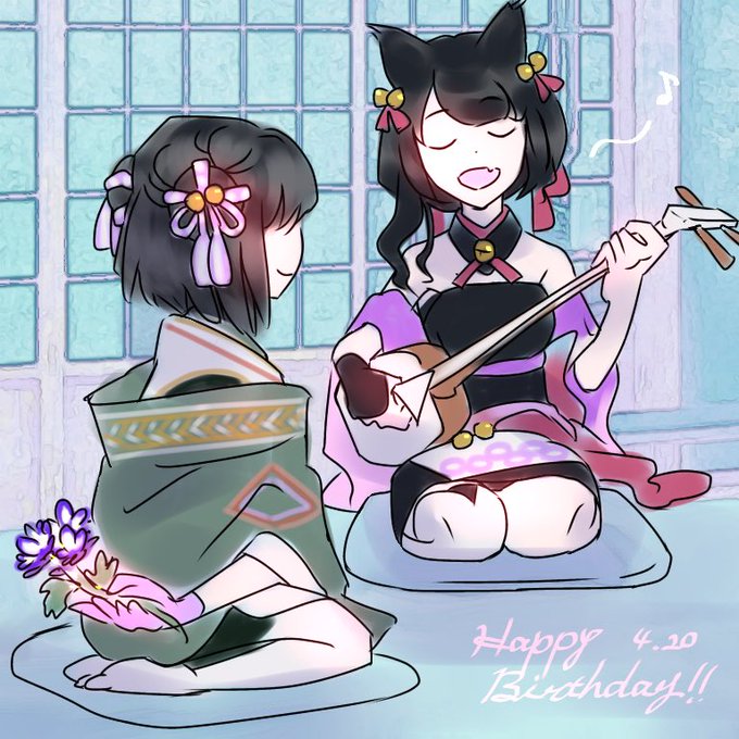 珠ちゃん紫桜くんお誕生日おめでとうございました!!!!! 遅刻でタグ失礼致します #珠誕生祭2021 #紫桜誕生祭2021 「お歌のプレゼント、にゃ」