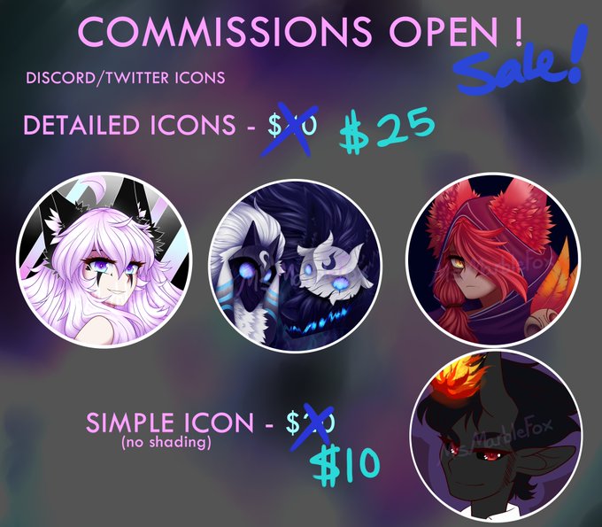 COMMISSION SALE!!! Hi guys I'm doing a sale for my Icons right now and I've also added half/full body commissions as an option as well! Please DM me if you are interested! Retweets are very appreciated!💜 No NSFW xP