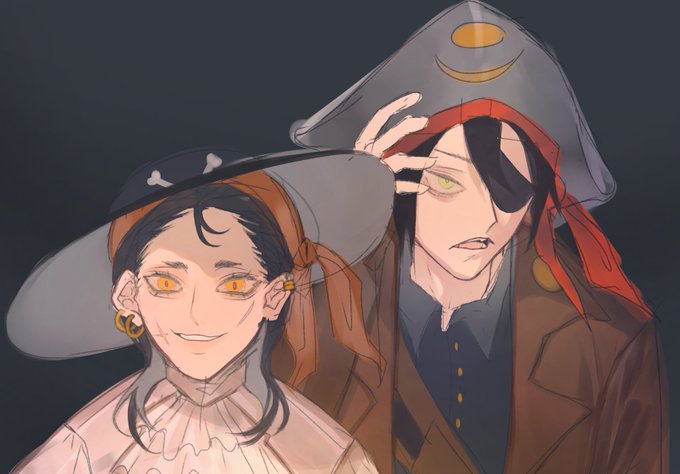 Colored sketch of me and me boy's pirate ocs 🥺🥺🥺 personal art for sanity yee haw