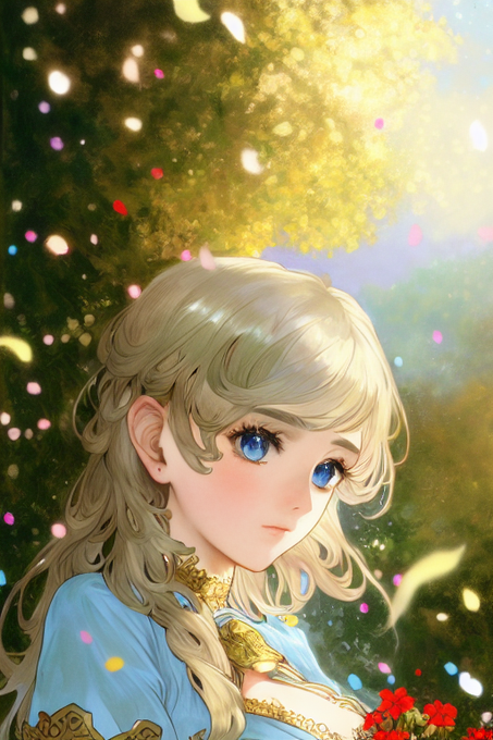 背景に森や花園を指定していてもなんだか花とか木々とかが雑然と登場するところはAIクオリティなのかも?!