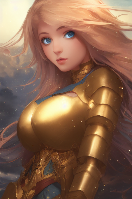 昔の呪文を今のスタイルに修正してみましたシリーズ2つめ。当時、鎧を着たかっこいい女騎士の画像を目指していたんですが、なかなかうまくいかなくて…いまの形式に呪文を整えてみましたが不安定なのは変わらずで…!