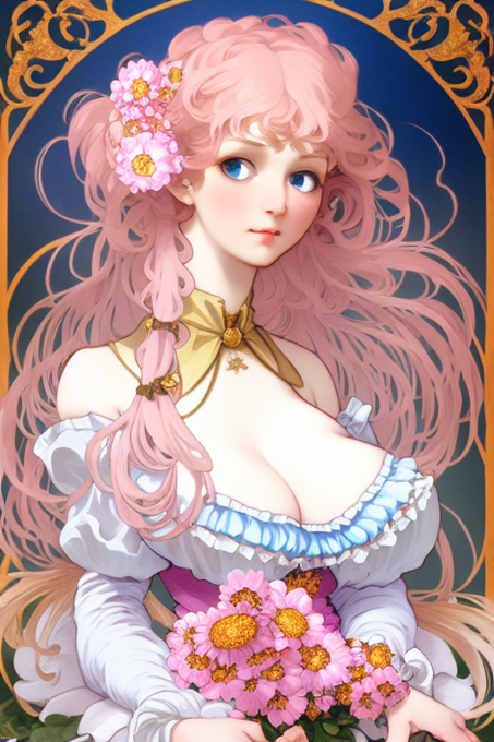 ミュシャ風のブックカバー画像、今朝はちょっとエルフさんから離れてピンク髪のディアンドルさんたちにしてみました!