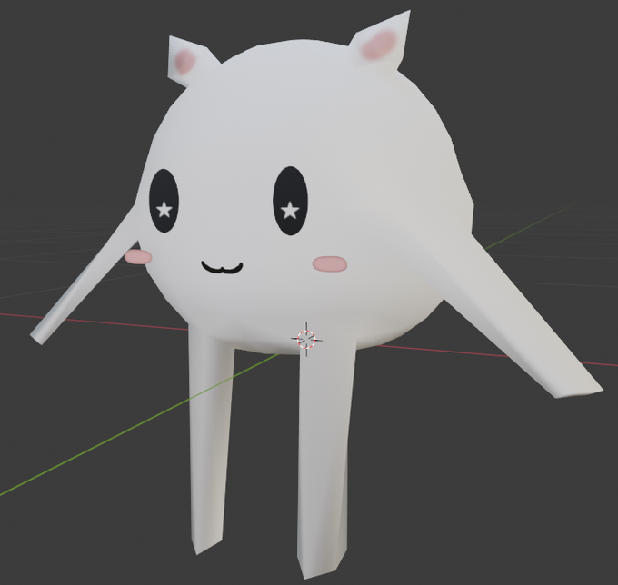 とりあえずコンセプトアートの「かわいいモノ」をワールドに召喚! blenderでフルスクラッチで作ってUnityに持ち込んでマテリアルとアニメーションつけたところまで! さて、こんどはコヤツをぴょんぴょんさせんといかんのじゃが…!?