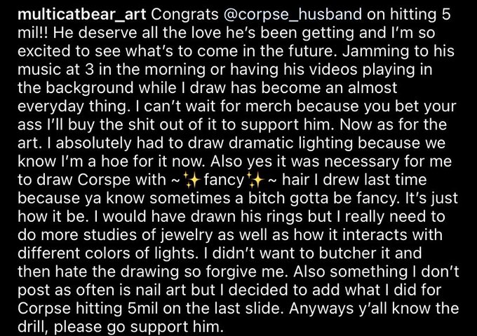 I made some things for @Corpse_Husband hitting 5 mil. That’s big cool and absolutely deserved. I’m also attaching what i said on insta because there isn’t enough words and i dont want to make a long ass thread.