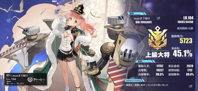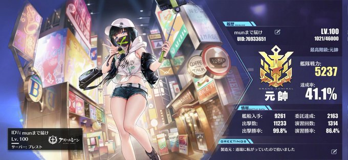 #メンテなのでアズレンプロフィールを無言で貼る