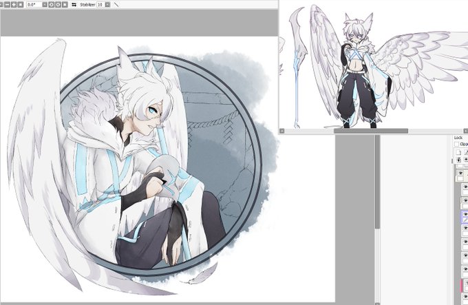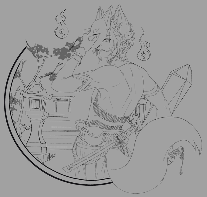 WIP large personal piece of Shirasu as I test out some fun new brushes for lines & color(omg yes, color).