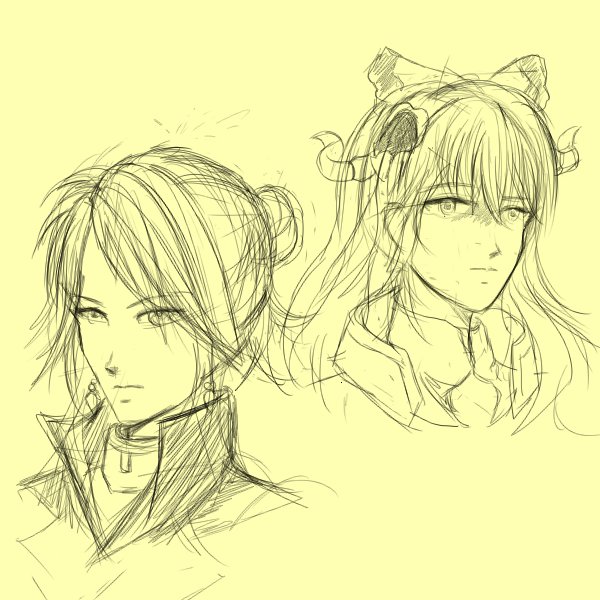 Sketch and Final of Dark Kat and Light Vira. #GranblueFantasy #gbf