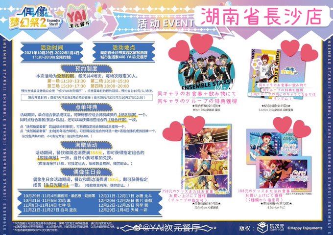 湖南省長沙にて開催されるあんスタのYAI次元カフェ、飲食及びグッズの特典情報まとめてみました。