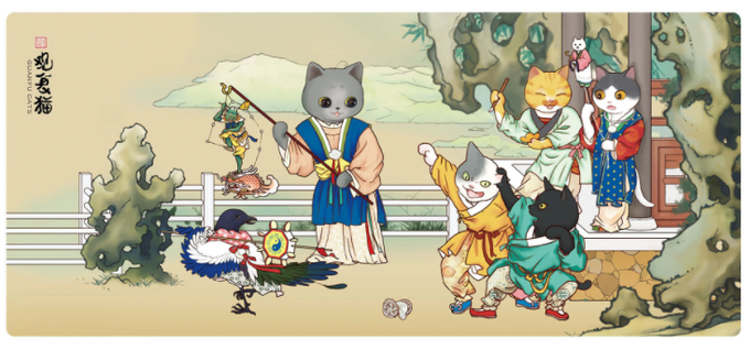 As the homeless cats in the #GuanfuMuseum draw many visitors, it recently launched mouse pads with cartoon motifs featuring Guanfu felines. With cats set within ancient paintings, the mouse pads incarnate palace characters and present the prosperity of the Tang Dynasty (618-907).