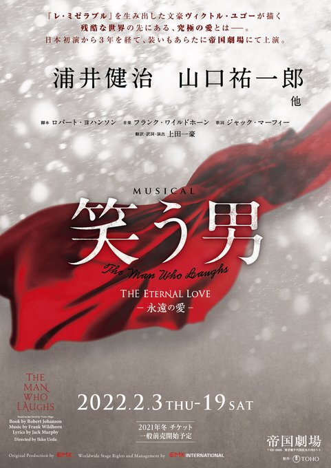 The Japanese version of “The Man Who Laughs” features talented director Ueda Ikkou, who has been recognized for his delicate directing skills, and star actor Kenji Urai, who was acclaimed for his role as “Gwynplaine” in 2019. #上田一豪#浦井健治