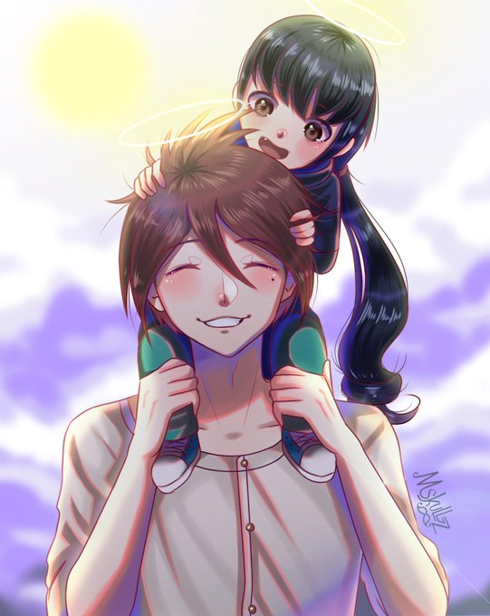 Art I made for my sister, her character was in a dr rp group and ended up being the victim of this chapter, so I made this to cheer her up. Here Fukuro meets his little guardian angel in heaven.