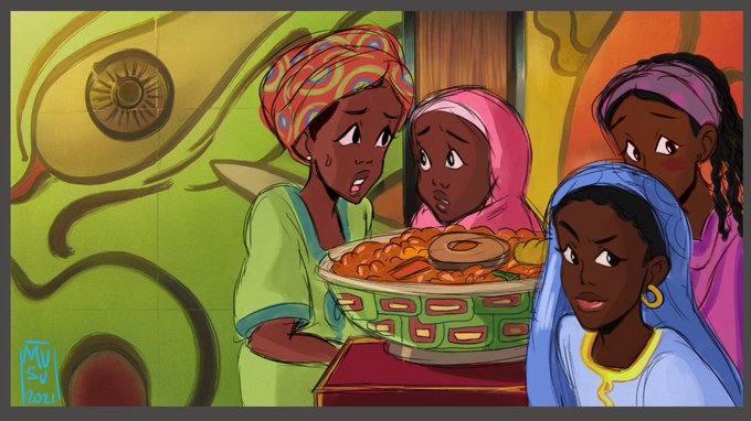 🥳Happy #ArtMubarak My name is Musu, I'm a Muslim artist from The Gambia. I like to use bright colors and create cute characters 🍓🌸🍓