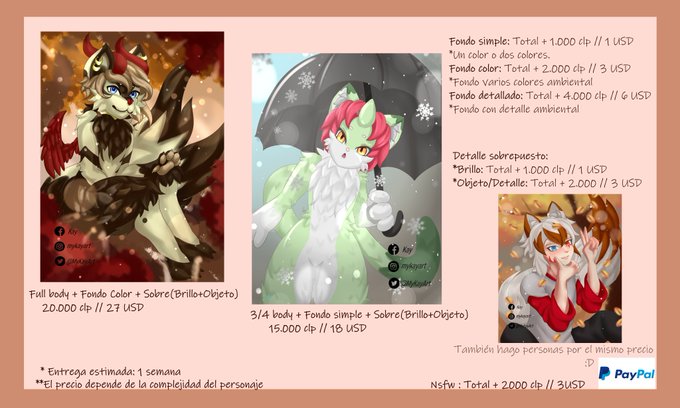 Bueno, por primera vez... ABRO COMISIONES! :'D ❤️ Esto es nuevo para mi, sobre todo hacerlo por una red social. Hago personas normales y furry. Ambas al mismo precio, si quieren dos personajes el segundo vale la mitad uwu~ Pueden consultar! Me ayudaría mucho sus retwits uwu~