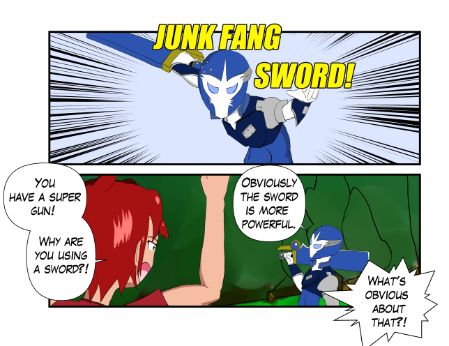 Its My Turn! is a lighthearted 4-panel strip about magical girls and armored boys butting heads and fighting monsters.