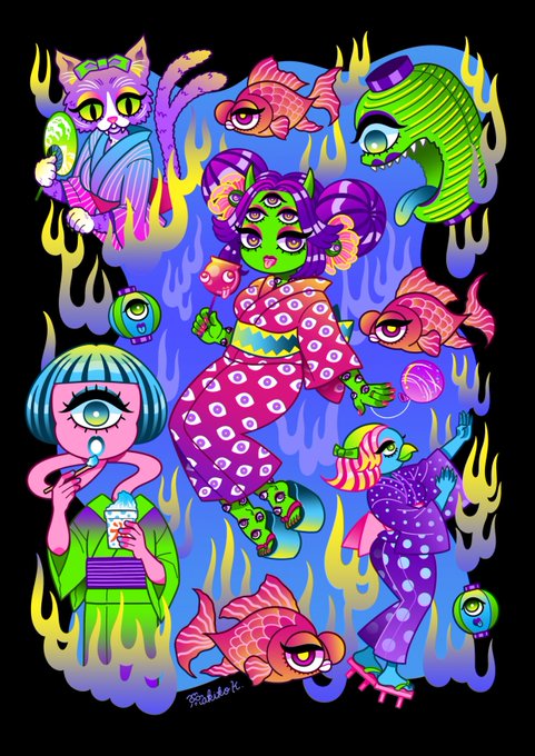 オリジナルのカラフルモダンな妖怪を描いたりしています👁🌈✨