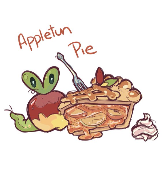 Havent finished these yet but heres some sketches :)) slice of appletun pie and im thinking about making a lil illustration of an african fat tailed charmander, blue eared squirtle, and i havent decided what kind of bulbasaur- maybe pacman :)