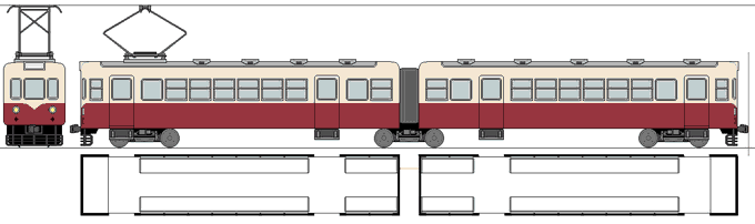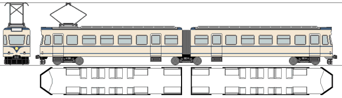 15m連接車なんて無理でしょ!となったので、12*8*12の連接になった(軽便プレメトロなんて誰もやっていないし、世界に類例も少ないのでコロコロ考えが変わる。)