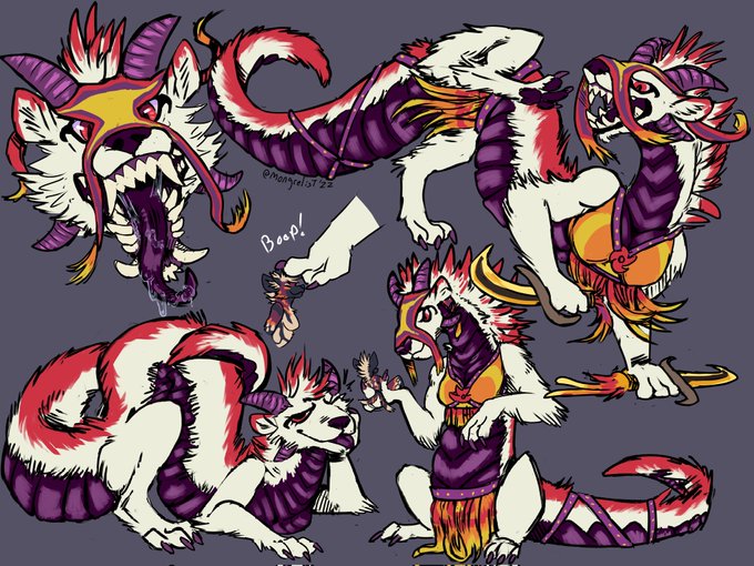 (art by @/corvidcurse, @/catto_artplace, @/KoboldKuriosArt, and @/geck0mania respectively!)