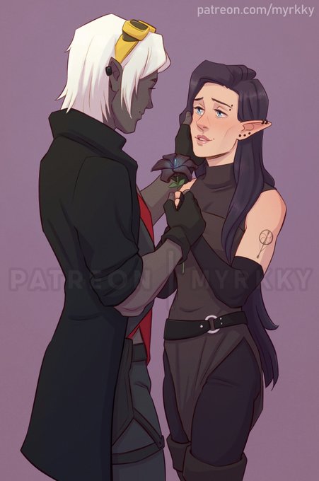 A commission for @RogueW01f84 of her characters Vaean and Locke sharing a tender moment 😊❤