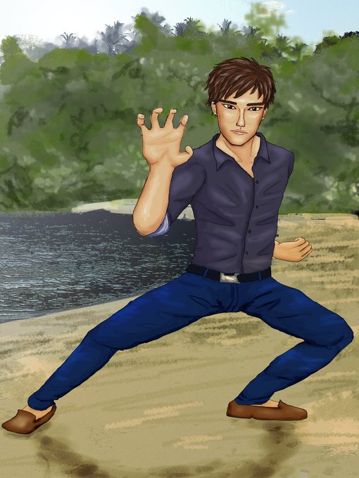 武術(八極拳)の達人という裏設定があったのですが、作中に出てこなかったのでイラストで表現。