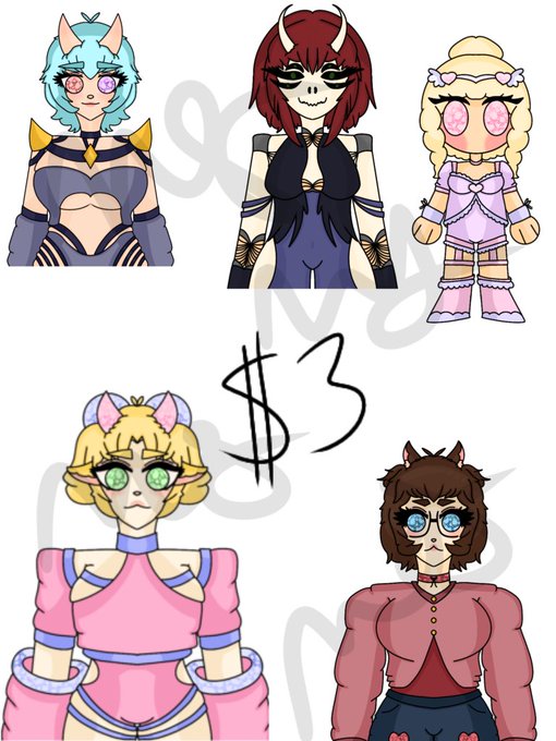 @xyliahecate Hi! I currently have all adoptables on sale rn! ($3 USD each) ^^ they're all pngtubers, one chibi design, can all be used for vtuber design, etc, cannot resell (ask about gifting)
