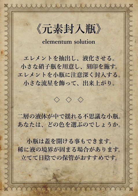 【《元素封入瓶》調合】(第3回)
