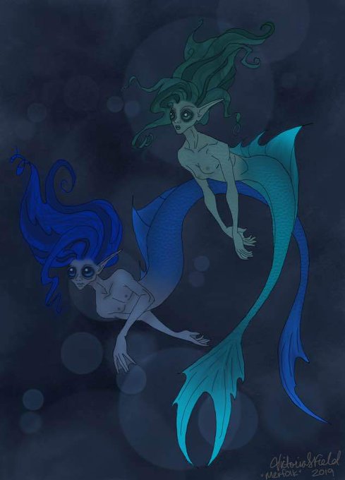 So I'm slightly....ok, ok, MAJORLY obsessed with mermaids. I have 2 types of merfolk I enjoy creating; traditional mermaids and darker, more folkloric sirens. These are some of the latter. Prints available - DM for details. (digital art)