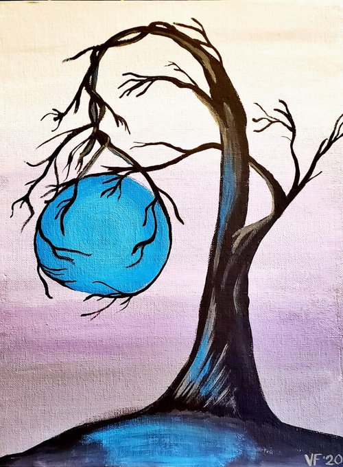 "Cradled" & "Blue Moon" (acrylic painting on canvas panel)