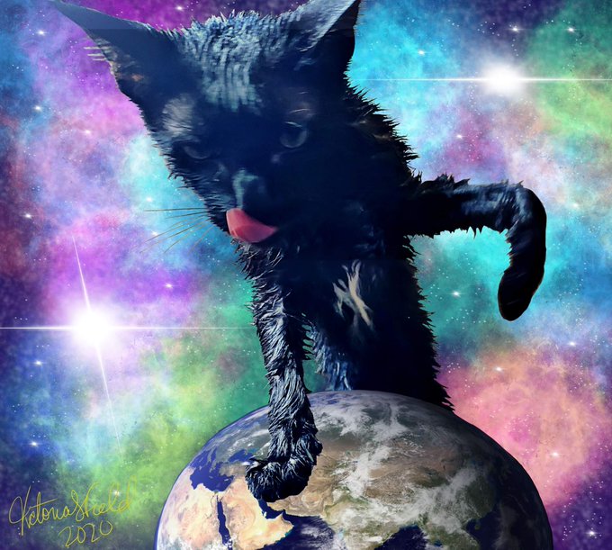@RC_Rose20 Have some space kitty. This is Shadow, aka Shadowcat the Abominable, showing off how pissed he was after a bath 😂😂😂 I thought it only fitting that I make him a space lord.