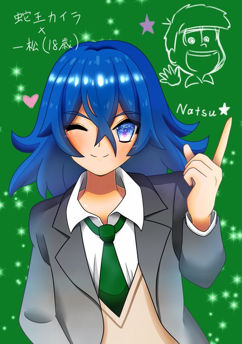 フォロワー様のお誕生日用に描いた、赤塚高校の制服を着たカイラくん🏫(えいがのおそ松さん 一松(18歳)の中の人コスです✨)