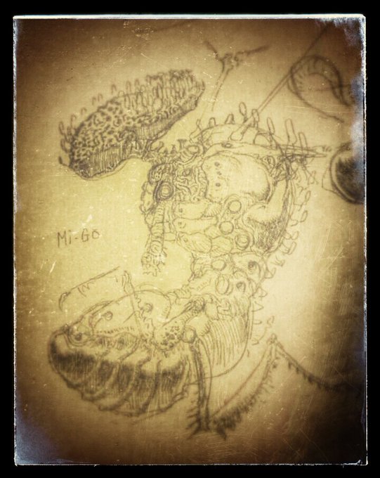 今日は #ミゴの日 一枚目のラフがが一番しっくりくるんだけど 二枚目はガッツリ時間をかけたので愛着ある 三枚目はクトゥルフ絵描きとして認知してもらった最初の頃の絵なのでそれぞれ気に入ってる