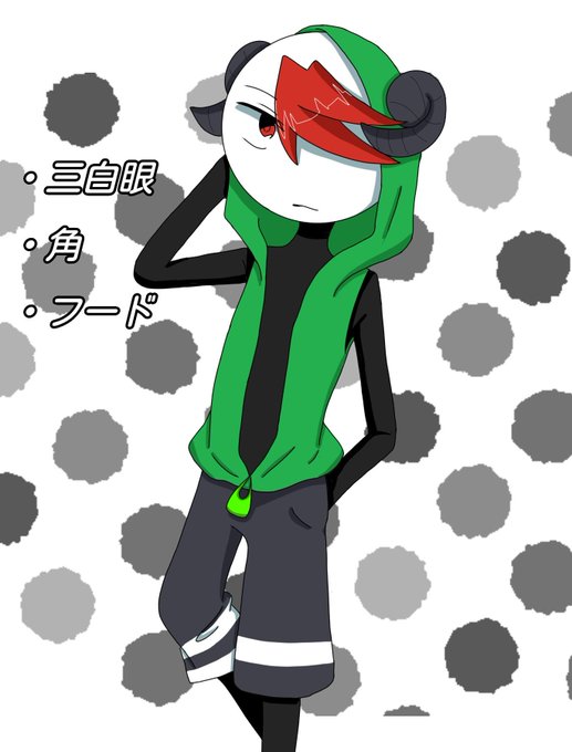 #性癖シャッフルゲーム 三白眼、角、フードで描かせていただきました! 服のセンス死んでます!_(:3 」∠)_