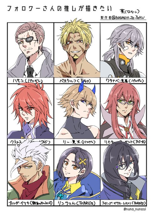 #フォロワーさんの推しが描きたい お待たせしました!今回はリクエストありがとうございます。まずは九人。 十人目以降は申し少しお持ちください!!
