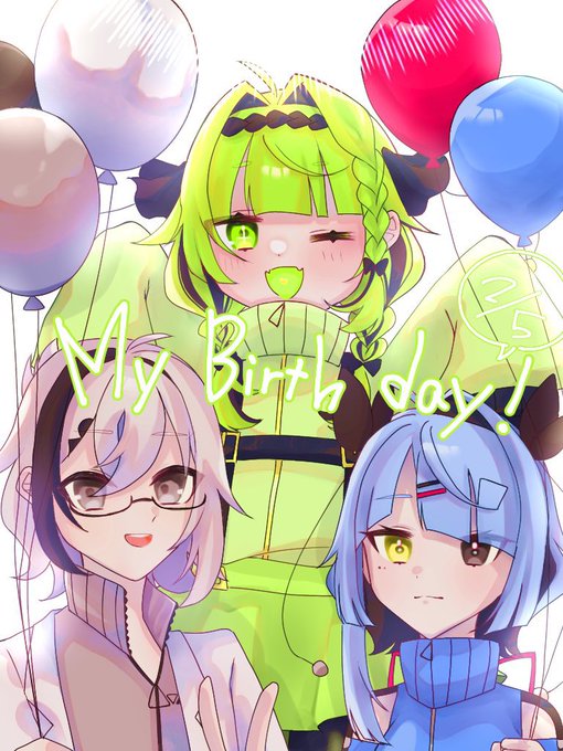 お誕生日迎えました🎈🎈🎈🎈🎈🎈 オリキャラちゃんたちです。 #イラスト