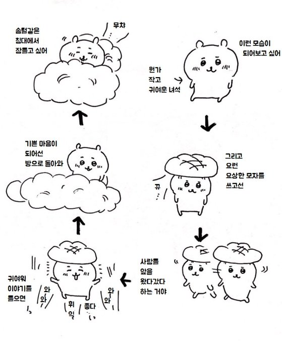 뭔가 작고 귀여운 녀석, 줄여서 치이카와 라고 부르는 농담곰의 공식 파생 캐릭터예요.