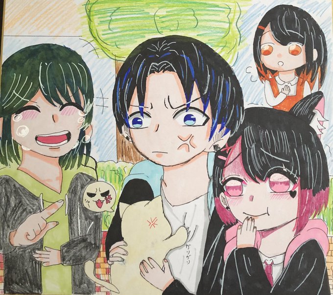 どんなに猫好きでも猫さんに懐かれることはない……。 その後じっと見つめる優理(ゆり)くん…… てかわし猫やんけ! #イラスト #色紙 #オリジナル #オリキャラ #猫