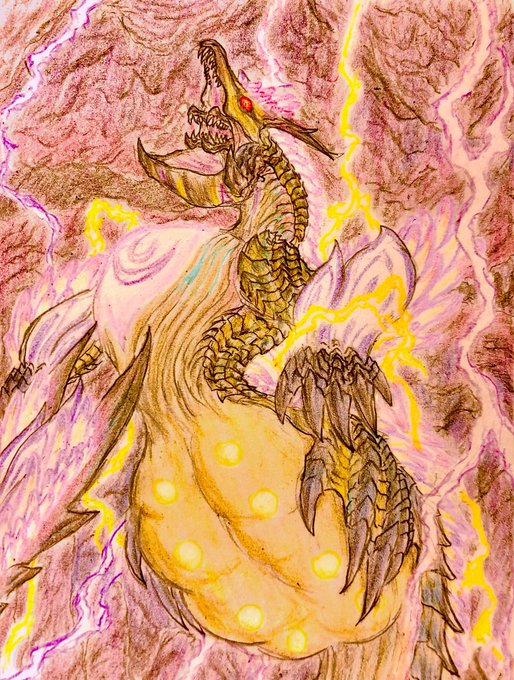 蒼隈取は怨霊と共に 数少ない目撃者の話によると、怨霊と共に現れてあらゆるものを焼き尽くしたという。 その性質からカムラの里近辺で確認される鬼火と呼ばれるガスと仮定され、本種はこの鬼火の爆破に巻き込まれた生物を捕食すると考えられている。 二枚目:通常個体とは異なる隈取のスケッチ