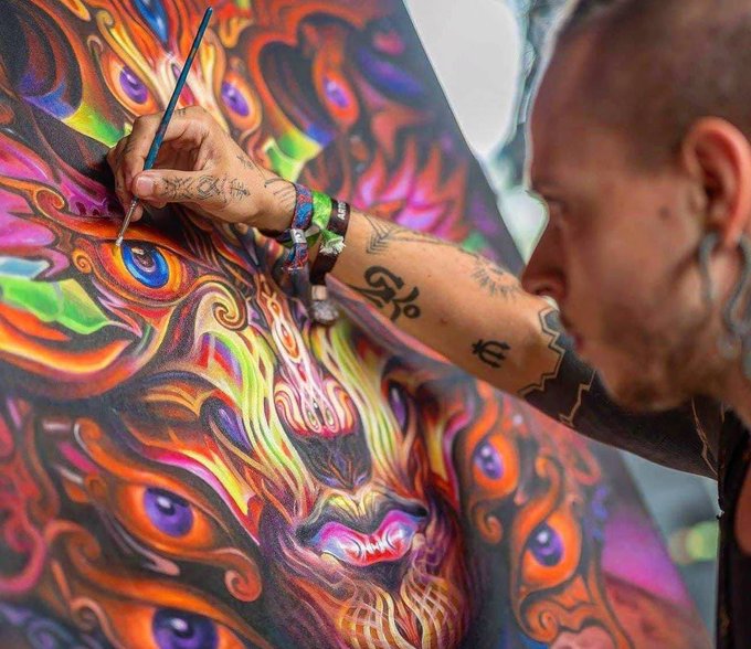 Jake creates incredible visionary paintings depicting the psychedelic experience. He has tons of sweet merch available & is now getting into #NFTs! 7% of his sales is donated to psychedelic research 🍄 So cool!