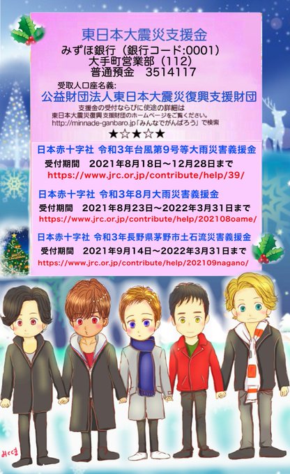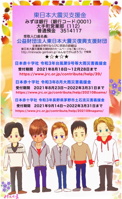 SMAPが続けてきた大切な想いを引き継ぎます。いつ起きるか分からない自然災害。今一度、備えを見直しましょう。自分なりに微力でも力になることをしていきます。皆様からの温かいお気持ちをよろしくお願い致します。