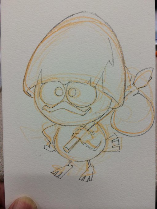 今日の一枚〜! たまには…と途中の画撮も。 ・水彩色鉛筆でラフ ・鉛筆で主線を入れる ・水筆で水彩色鉛筆をボカす ・思ったよりも鉛筆が負けてたんで、消えかけてるところを鉛筆で少し補正 ・絵の具で塗る ・完成