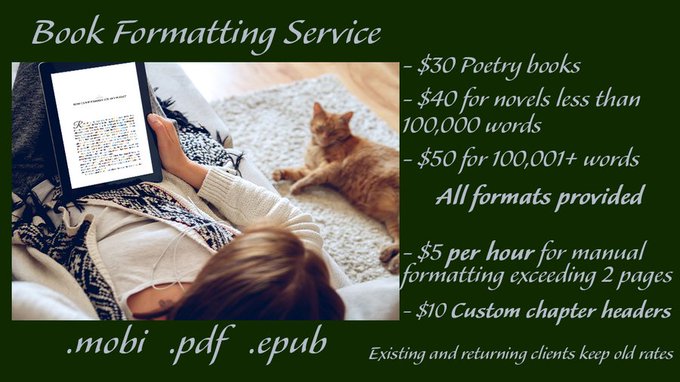 Professional book formatting service. All formats provided for a flat fee