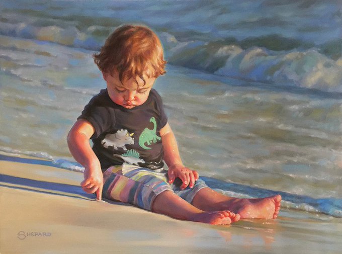 A great change of values painting the skin of the child. It gives us a perfect feeling of effects of water and sun.