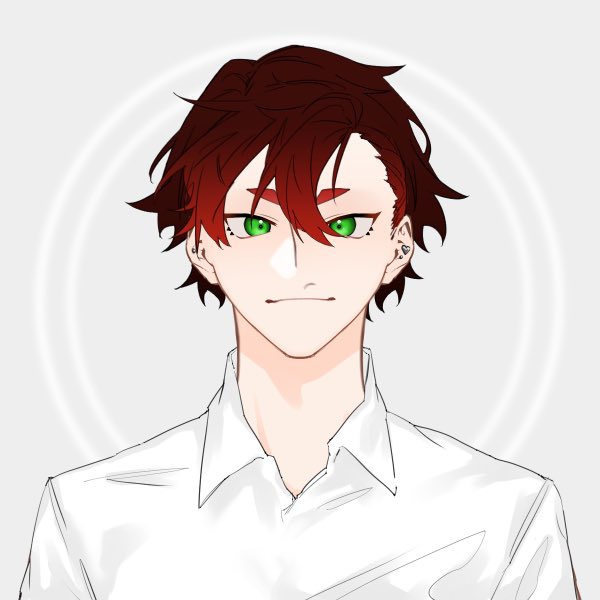 緑髪赤目です
