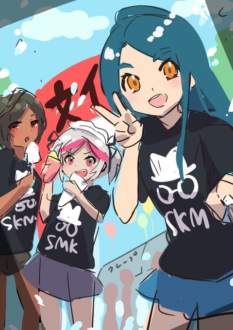 お揃いのTシャツといえば文化祭!って事でラフ2つ描いてみました。