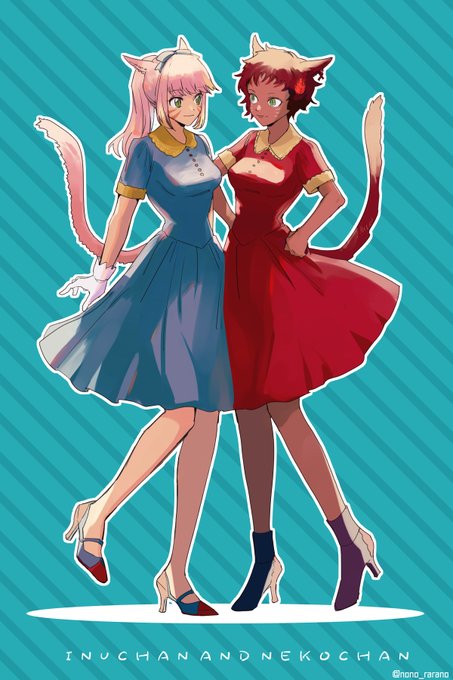 リクエスト頂いたのでいぬちゃんとねこちゃん描かせて頂きましたやった〜〜〜〜〜かわいいかわいい